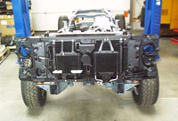 Bislang wurde das Fahrgestell gesandstrahlt und speziell lackiert, auch sämtliche Hohlräume wurden ausgespritzt. Die Hinterachse wurde vom Rost befreit und ebenfalls lackiert.